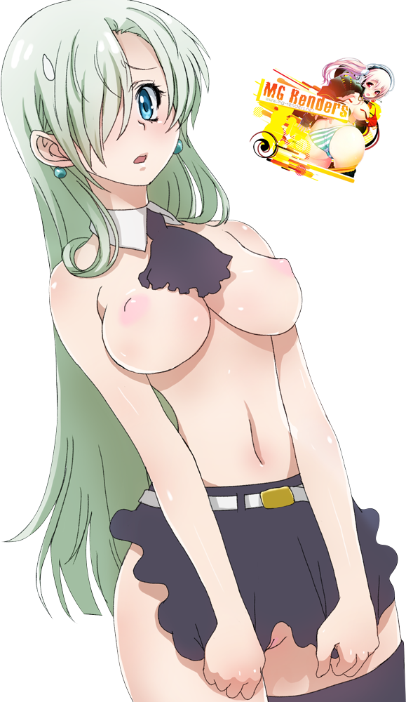 Elizabeth Liones, Green hair, Large Breasts, Nanatsu no Taizai, No bra, No panties, Skirt, Stockings, Thigh Highs, Vagina, White hair, Render