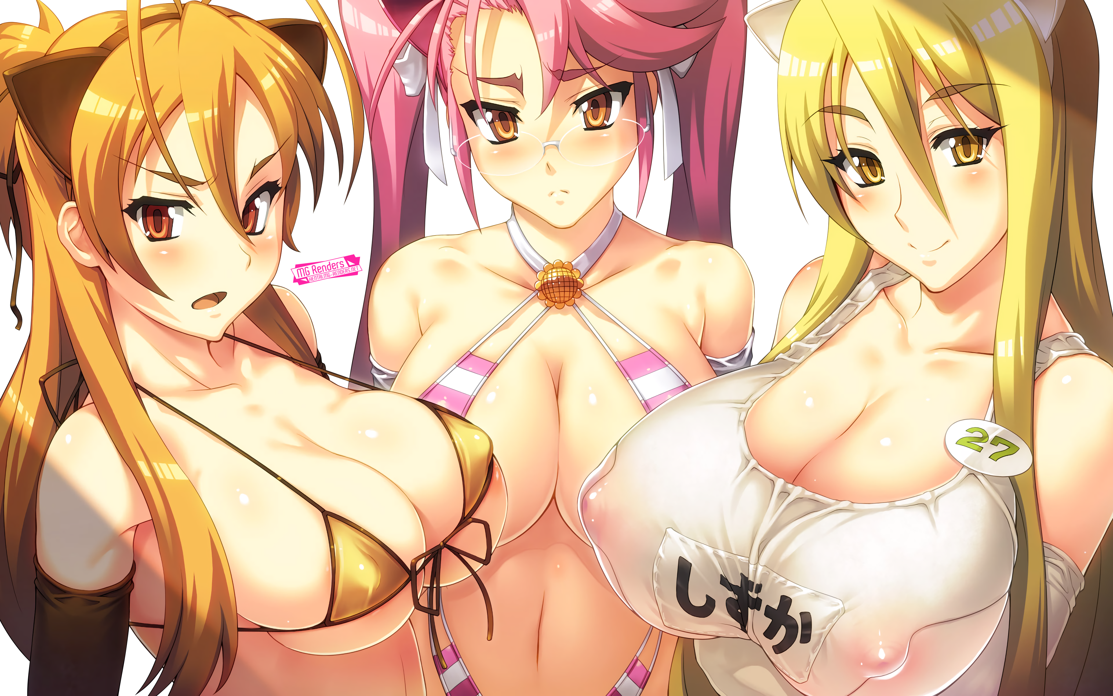 Highschool Of The Dead, Marikawa Shizuka, Miyamoto Rei, Takagi Saya, Render